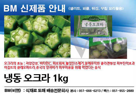 야채 냉동 오크라 1kg 페이지 정보 작성자 (BM)운영자 댓글 0건 조회 13,386회 작성일 15-11-23 14:53 목록 본문 샐러드, 피클, 튀김, 무침요리활용등오크라의 효능 : 자양강장, 비타민C, 피로회복, 활성산소제거몸에유익한 콜라겐형성 피부탄력효과이집트의 클레오파트라, 중국의 양귀비가 피부미용을위해 먹었다는 음식냉동 오크라 1kg 이전글(일식용) 동원빵가루 골드(굵은것) 15.12.22 다음글후레쉬 바질 15.11.23 댓글 0 댓글목록 등록된 댓글이 없습니다.