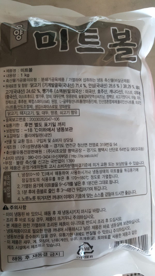 냉동식품 미트볼 페이지 정보 작성자 (BM)운영자 댓글 0건 조회 8,054회 작성일 17-02-24 16:49 목록 게시판 리스트 옵션 검색 본문 사조오양 미트볼 1kg분쇄가공육제품 / 가열하여 섭취하는 냉동 축산물(비살균제품)닭고기(기계발골육(국내산) 71.4%, 안심(국내산) 28.6%)) 이전글수제 통살 등심돈까스 19.01.11 다음글(일식용) 동원빵가루 골드(굵은것) 15.12.22 댓글 0 댓글목록 등록된 댓글이 없습니다.