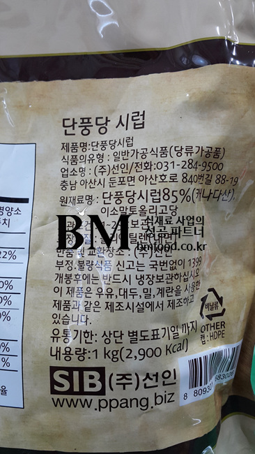 커피,음료,주류 메이플시럽(단풍단시럽) 1kg 페이지 정보 작성자 (BM)운영자 댓글 0건 조회 11,750회 작성일 15-11-23 14:47 목록 본문 제품명 : 단풍단시럽Maple Syrup식품의유형 : 일반가공식품(당류가공품)단풍단시럽 85%(캐나다산), 이소말토올리고당외내용량 1kg(2,900kcal) 이전글세척 피홍합(국내산) 15.11.23 다음글슈가파우다 3kg 15.11.23 댓글 0 댓글목록 등록된 댓글이 없습니다.
